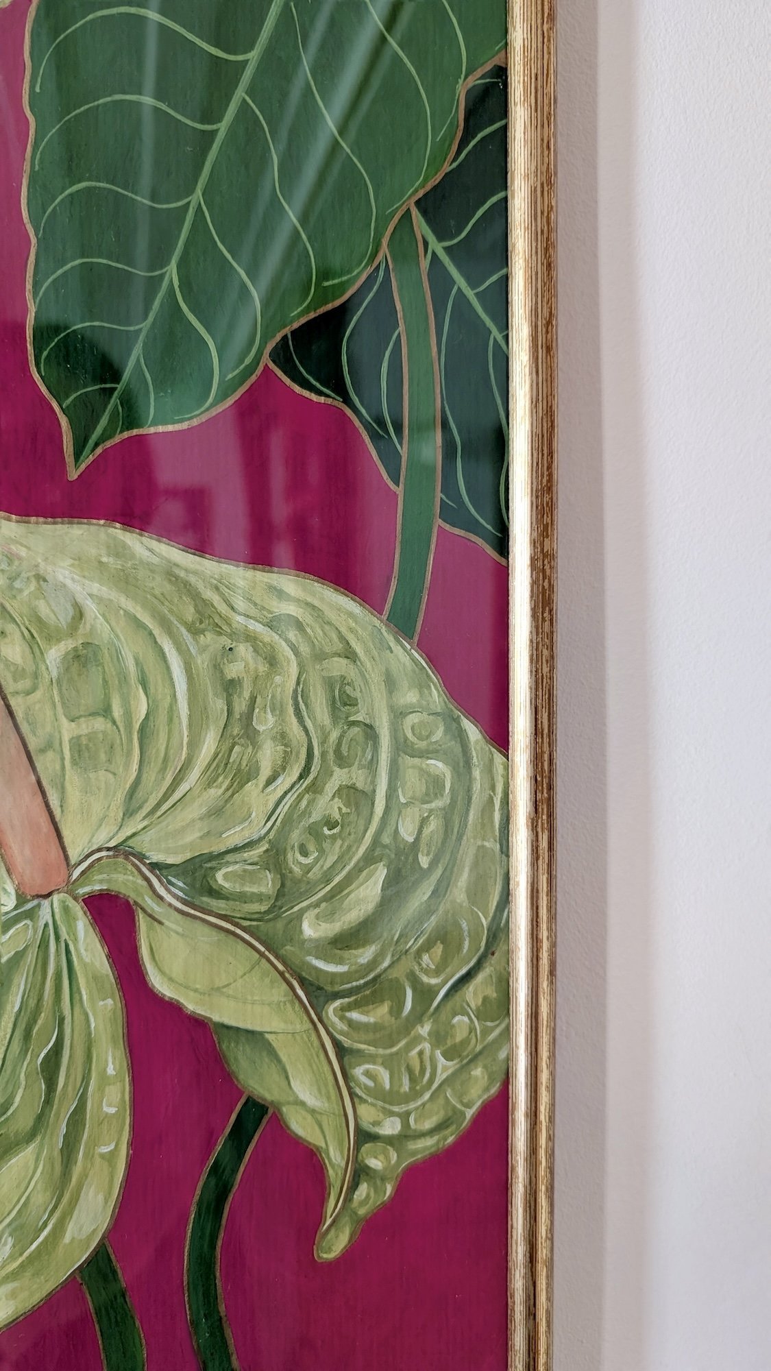 Anthurium, with its’ heart shaped, fleshy petals and curved spadix is often considered a sensual or even sexual flower. The almost unreal blooms have a very unique, like a honey leaking texture, which may also be seen as craters of the Moon.